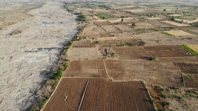Drone Image Covering MT Karhera (YNR-B-13) Sand mine at Yamuna River in District: Yamunanagar, Haryana