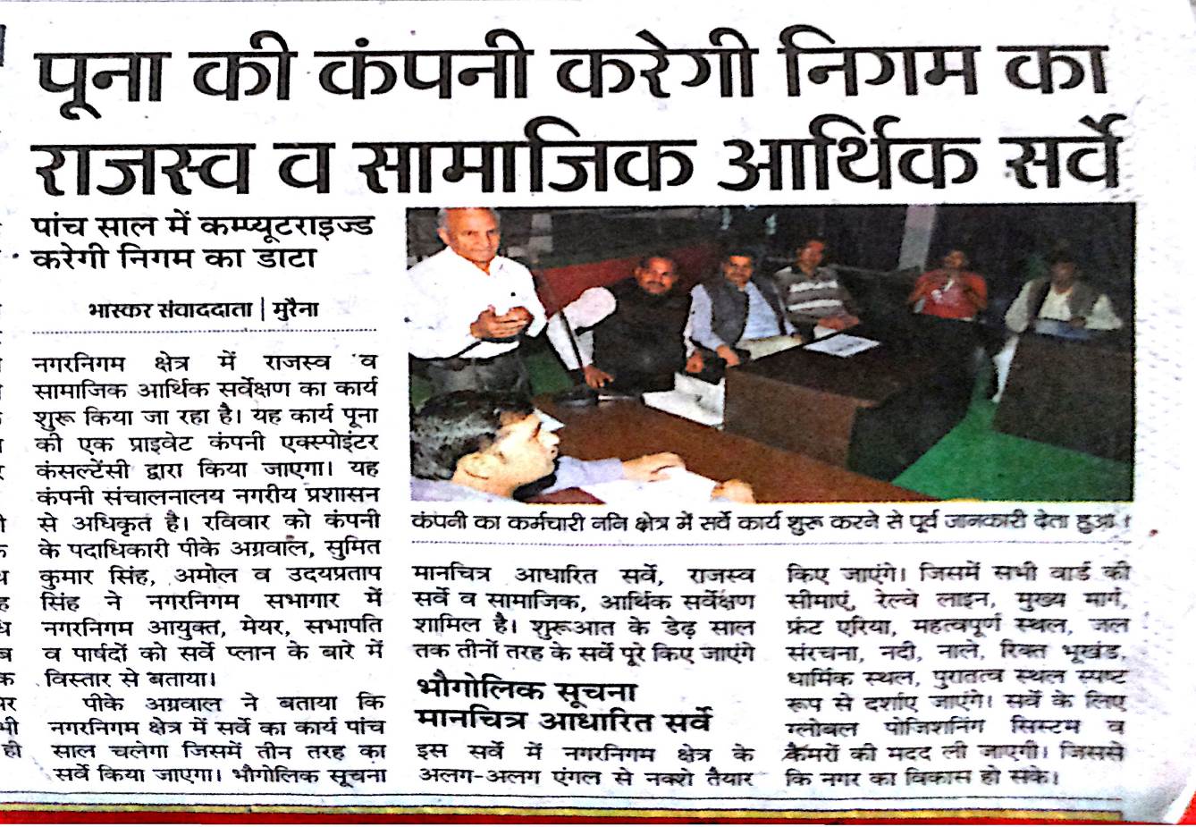 Services : The Project is regarding the Preparationof Property Tax Register based on GIS and Multi-Purpose Household Survey with Technical Hand-holding Support Cluster S-5 comprising of 5 numbers of Urban Local Bodies namely Morena, Ambah, Porsa, Sabalgarh and Jourain Madhya Pradesh. The key features including survey of slums and properties based on latest technology such as using DGPS & multipurpose household survey which will provide complete coverage of properties, taxes under municipal law of all household covering all service level like Solid waste, sewerage, water supply & Sanitation and further technical handholding for 3 years.