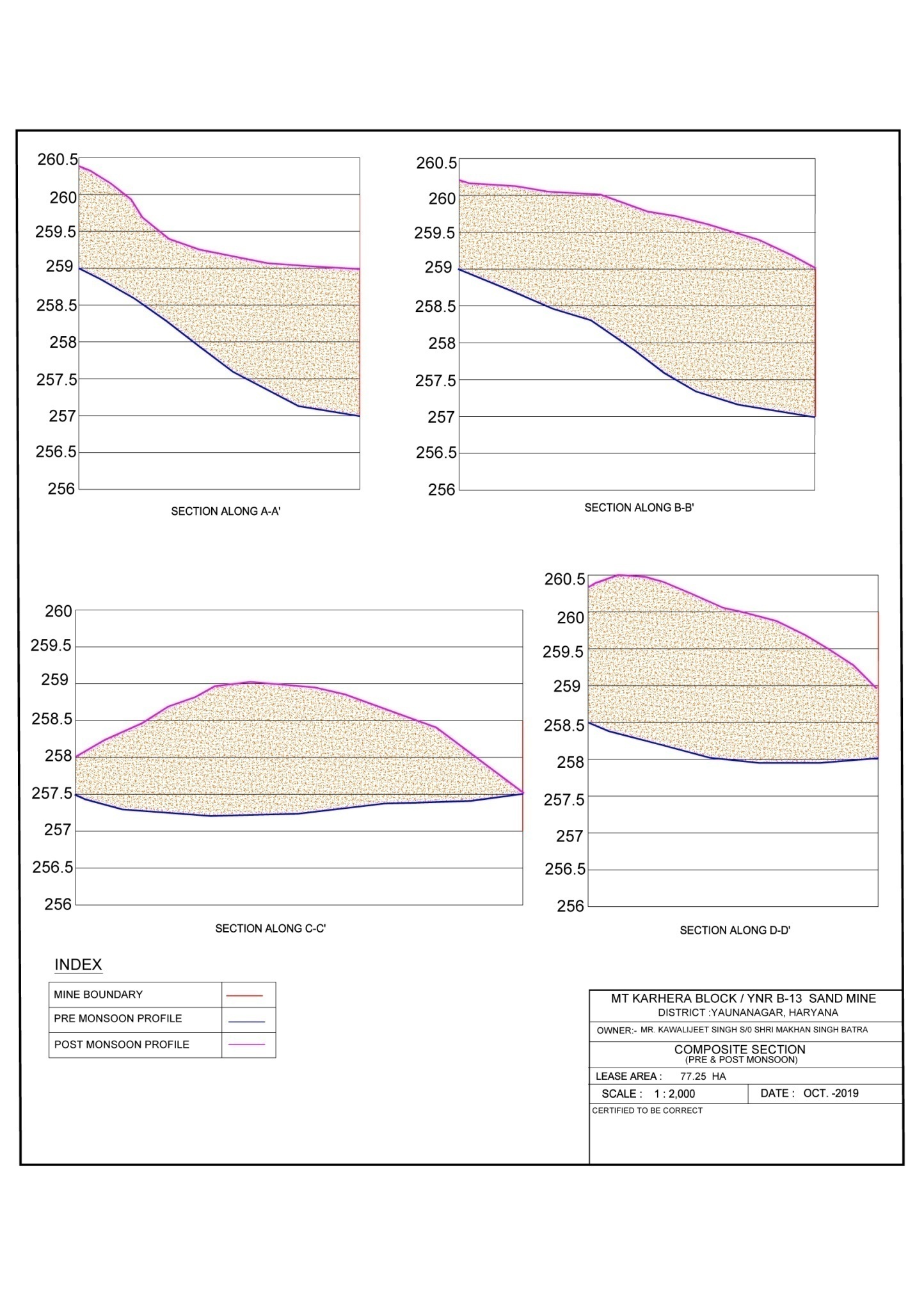 (Composite section of Pre & Post Monsoon Contour Map Sand Mine Deposit at Yamuna River Bed)